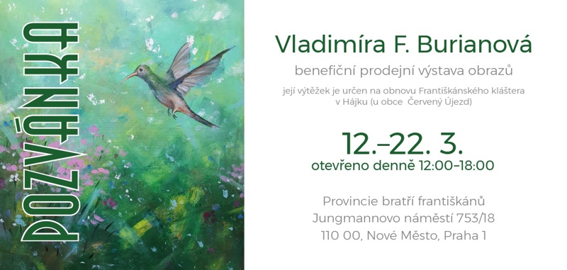 Milí přátelé, ráda bych vás všechny pozvala na svou výstavu, která se bude konat v krásném prostředí františkánského kláštera u kostela Panny Marie Sněžné v Praze.